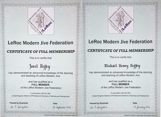 Members of the UKA (United Kingdom Alliance of Professional Teachers of Dance) and Full Members of the LeRoc Modern Jive Federation. Jan is also the secretary of the LeRoc Federation.